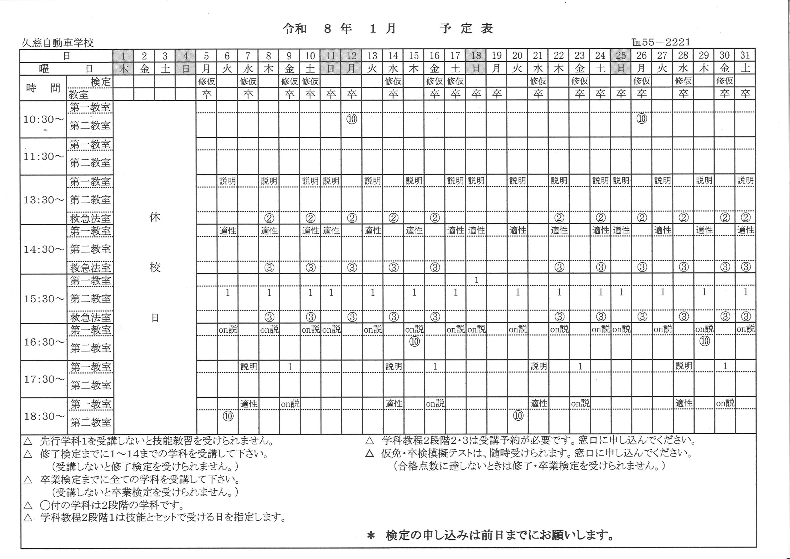 TOP > 新着情報 > 2026年1月学科予定表を掲示しました