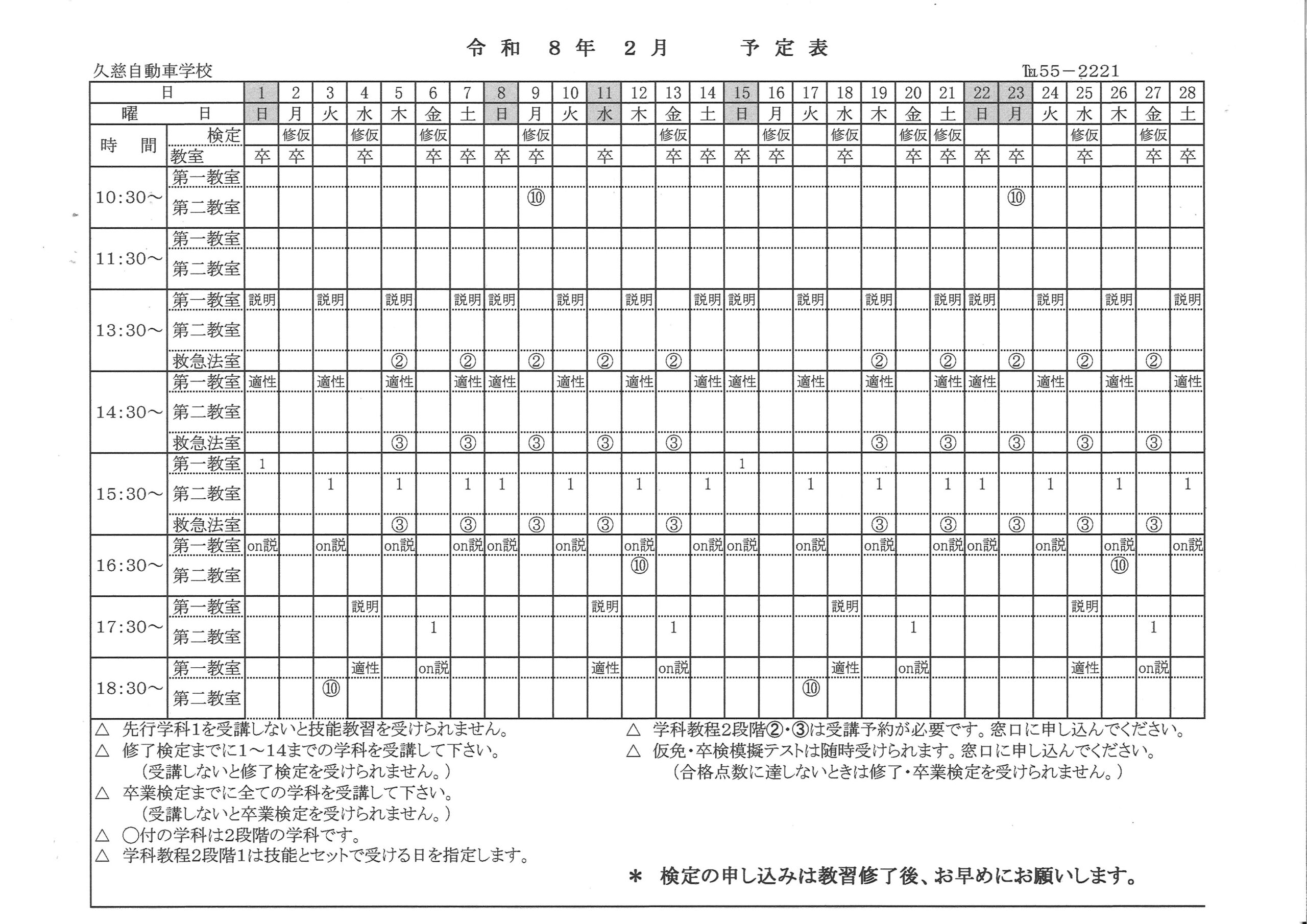 TOP > 新着情報 > 2026年2月学科予定表を掲示しました